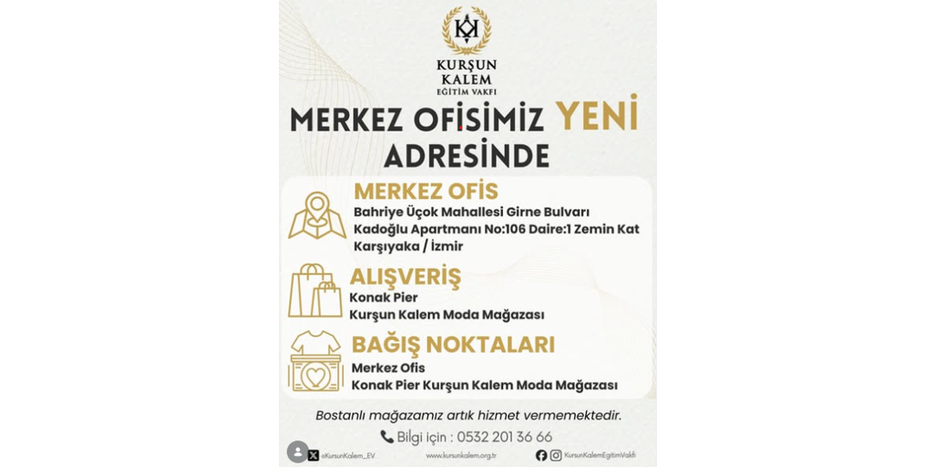 Kurşun Kalem Eğitim Vakfı merkez ofisi Karşıyaka’daki yeni adresinde hizmet vermeye devam ediyor.
