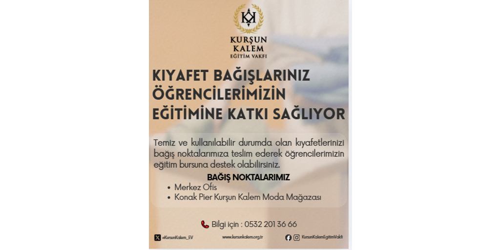 Laik, demokratik, çağdaş bir eğitim için Kurşun Kalem Eğitim Vakfı'nın yanında olun. Önceliği kız çocukları olan gelecek nesilleri doğru, düzgün ve iyi bireyler yetiştiren vakfa desteklerinizi bekliyorum.